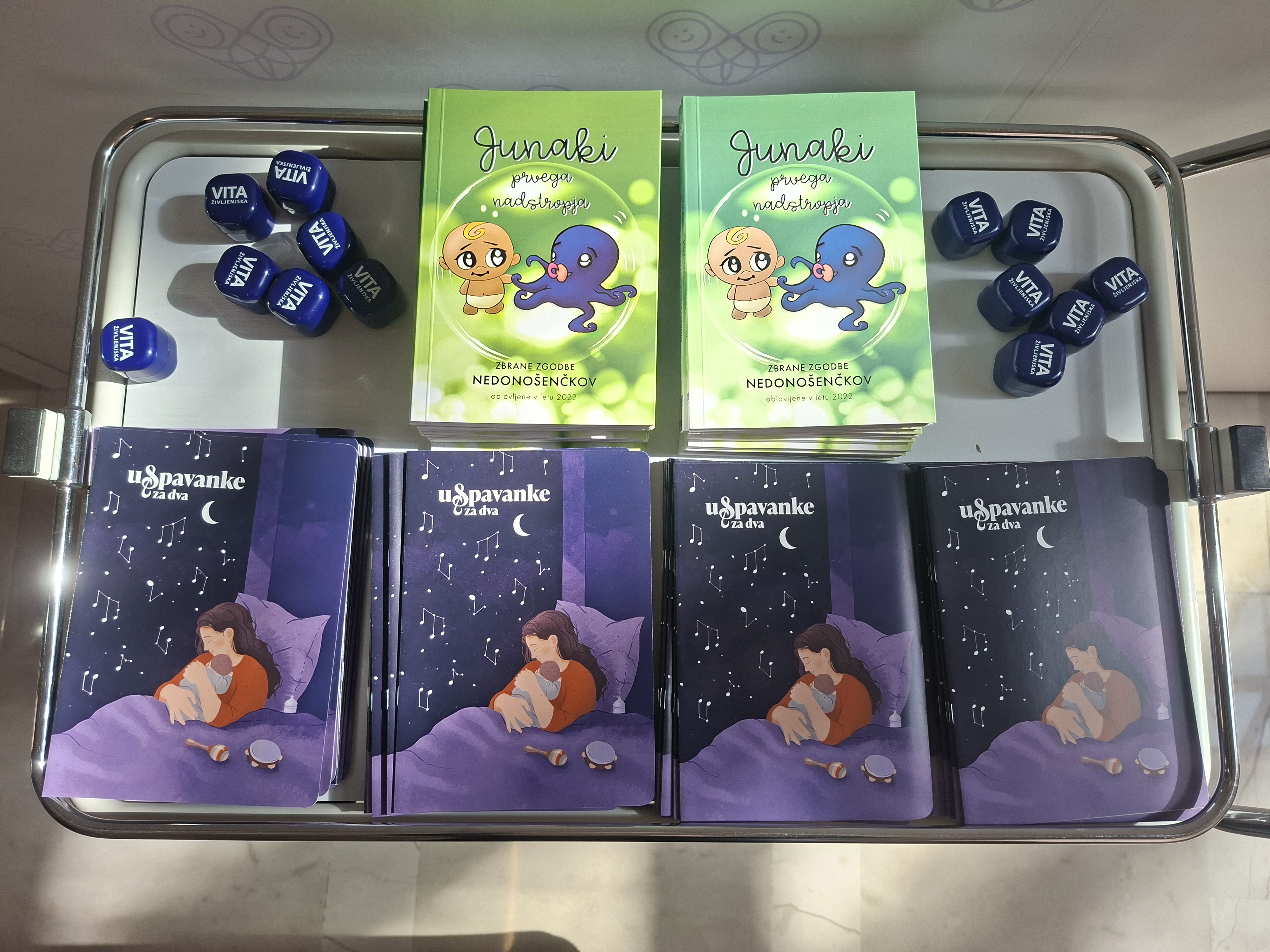 Mamice so prejele tudi Knjigico Uspavanke za dva, ki je nastala v okviru projekta Vitine Spodbudnice Zavarovalnice Vita. Projekt izhaja iz pomembnega spoznanja, da več kot 70 odstotkov mamic v prvem letu po rojstvu otroka doživlja različne duševne stiske. Uspavanke so zato namenjene ne le otrokom, temveč tudi mamicam. Vsaka izmed njih nagovarja eno izmed pogostih čustvenih izkušenj v prvih tednih po porodu – negotovost, utrujenost, občutek preobremenjenosti ali potrebo po podpori.
