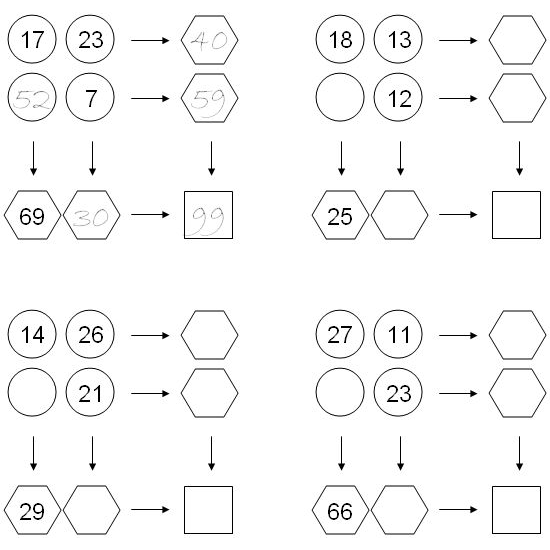 Poišči manjkajoče številke. Za pomoč si oglej rešen primer levo zgoraj.