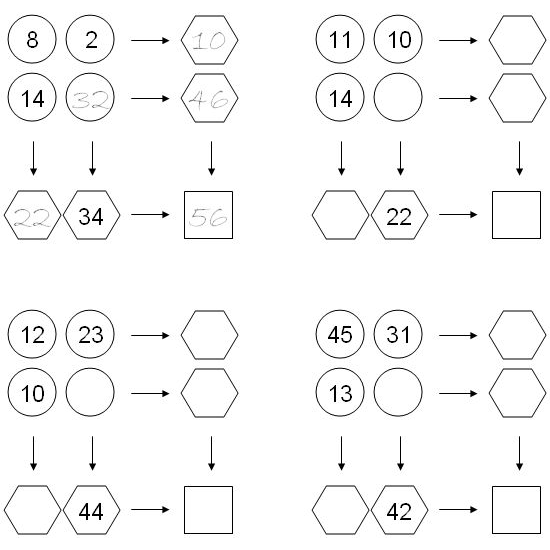 Poišči manjkajoče številke. Za pomoč si oglej rešen primer levo zgoraj.