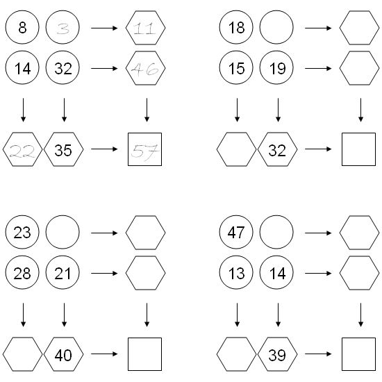 Poišči manjkajoče številke. Za pomoč si oglej rešen primer levo zgoraj.