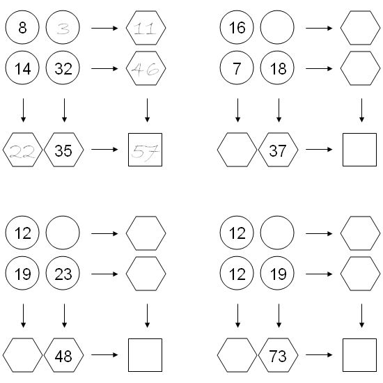 Poišči manjkajoče številke. Za pomoč si oglej rešen primer levo zgoraj.