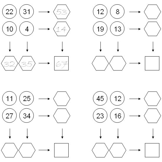 Poišči manjkajoče številke. Za pomoč si oglej rešen primer levo zgoraj.
