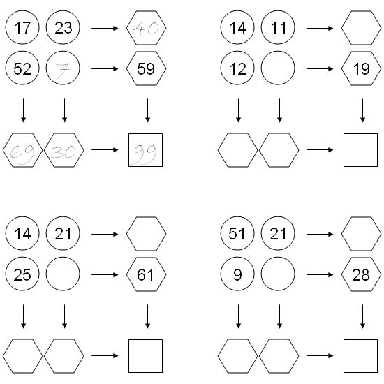 Poišči manjkajoče številke. Za pomoč si oglej rešen primer levo zgoraj.