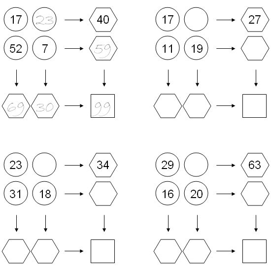 Poišči manjkajoče številke. Za pomoč si oglej rešen primer levo zgoraj.
