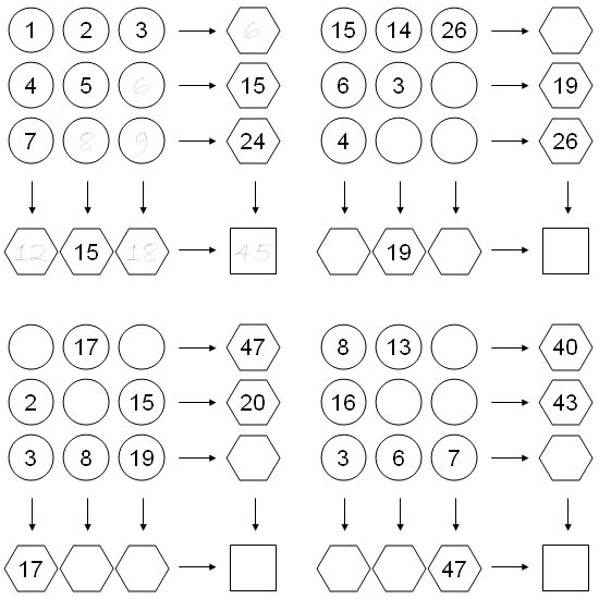 Poišči manjkajoče številke. Za pomoč si oglej rešen primer levo zgoraj.