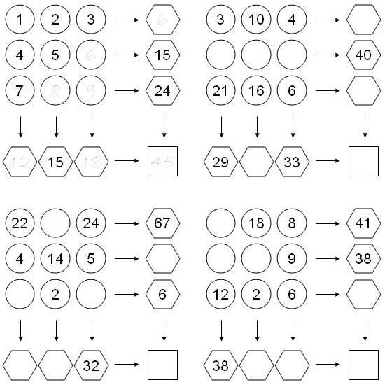 Poišči manjkajoče številke. Za pomoč si oglej rešen primer levo zgoraj.