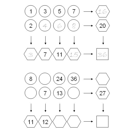 Poišči manjkajoče številke. Za pomoč si oglej rešen primer levo zgoraj.