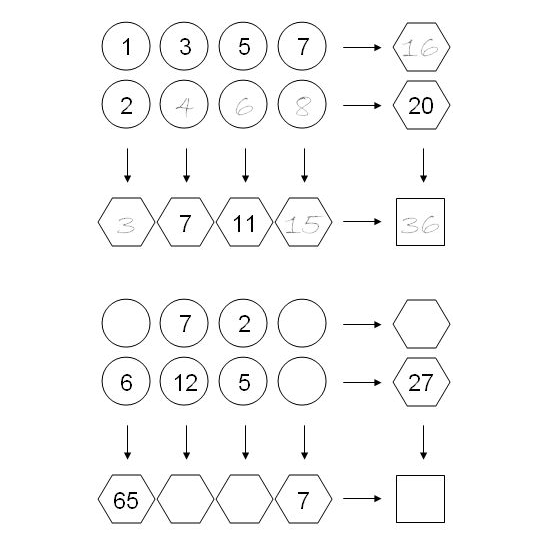Poišči manjkajoče številke. Za pomoč si oglej rešen primer levo zgoraj.