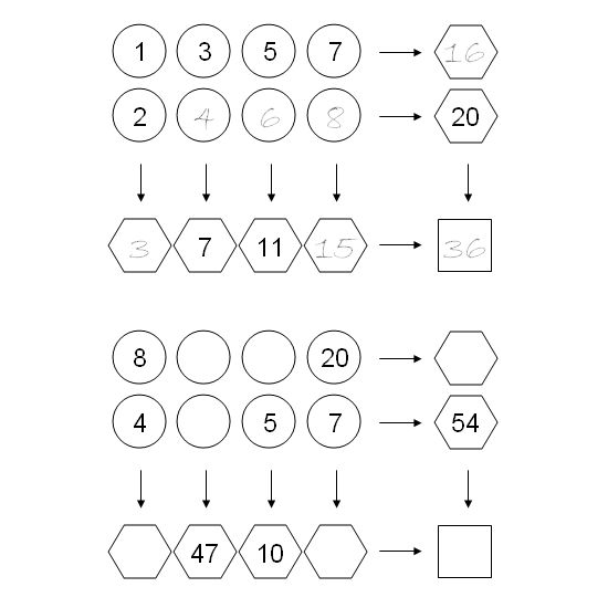 Poišči manjkajoče številke. Za pomoč si oglej rešen primer levo zgoraj.