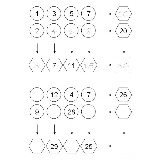 Poišči manjkajoče številke. Za pomoč si oglej rešen primer levo zgoraj.