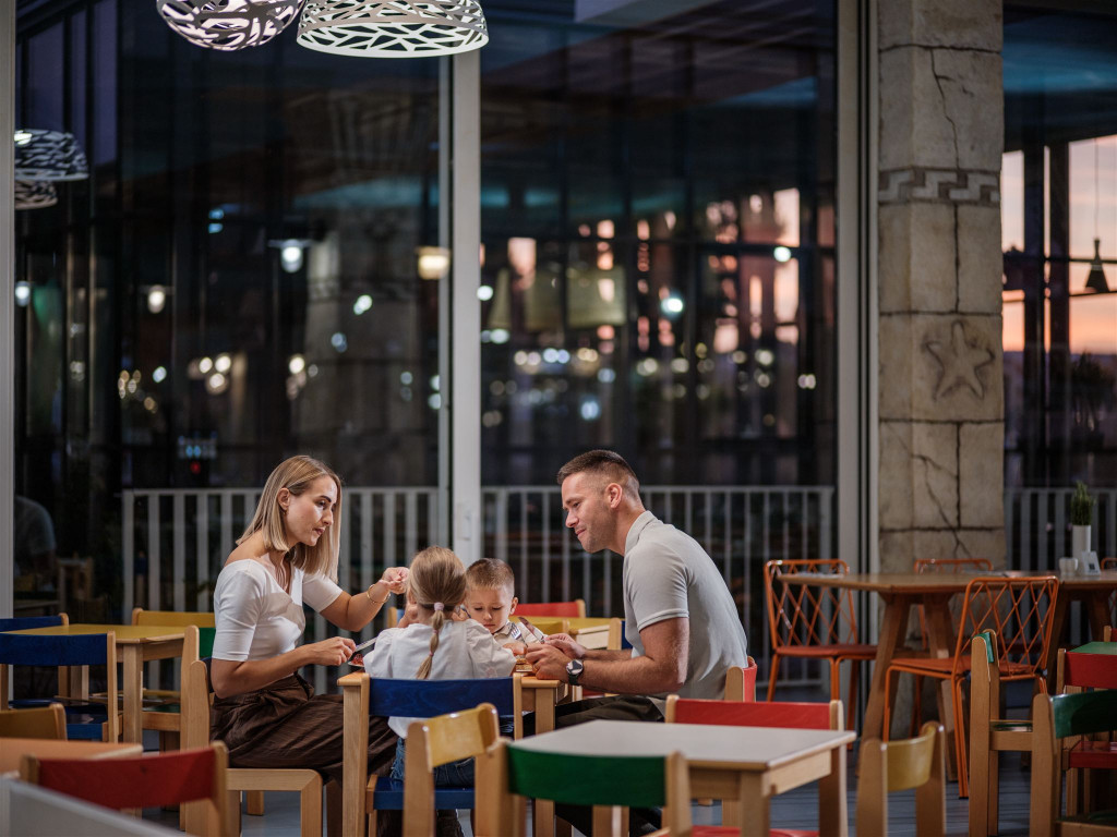 Brezskrbne počitnice ne gredo brez dobre hrane. V okviru ponudbe imajo otroci zagotovljen zajtrk in večerjo, hotelska kuhinja pa ponuja raznolik samopostrežni bife z jedmi, prilagojenimi otrokom in družinam. Poudarek je na uravnoteženih obrokih, svežih sestavinah in izbiri, ki ustreza različnim okusom.