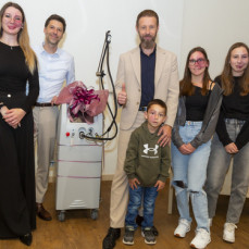 »Želim si, da bo ta laser postal simbol sočutja in srčnosti ter spomin na našega malega borca Viljema Julijana, ki nas ponosno opazuje izza mavrice,« je ob predaji povedal dr. Jelen.