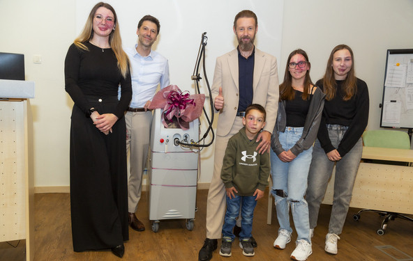 V Društvu Viljem Julijan so Dermatovenerološki kliniki UKC Ljubljana podarili posebno medicinsko napravo – PDL laser – v vrednosti 94.647 evrov. Gre za edini tovrstni laser, ki omogoča učinkovito zdravljenje in odstranjevanje ognjenih znamenj (nevus flammeus) pri otrocih in mladostnikih.