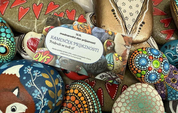 13. november je Mednarodni dan prijaznosti, ki ga Humanitarček zadnjih deset let obeležuje na prav poseben način – s preprostimi, ročno pobarvanimi kamenčki, na katerih se skrivajo vzpodbudna sporočila. Ideja, ki je nastala leta 2015 kot trajnostna alternativa rumenim rožicam, se je v tem času razširila po vsej Sloveniji in letos celo čez meje v številne evropske države.