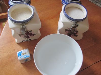 vse skupaj dobro premešamo - pregnetemo, dodajamo moko, dokler se ne prijema več posode...pustimo počivati 1 uro.